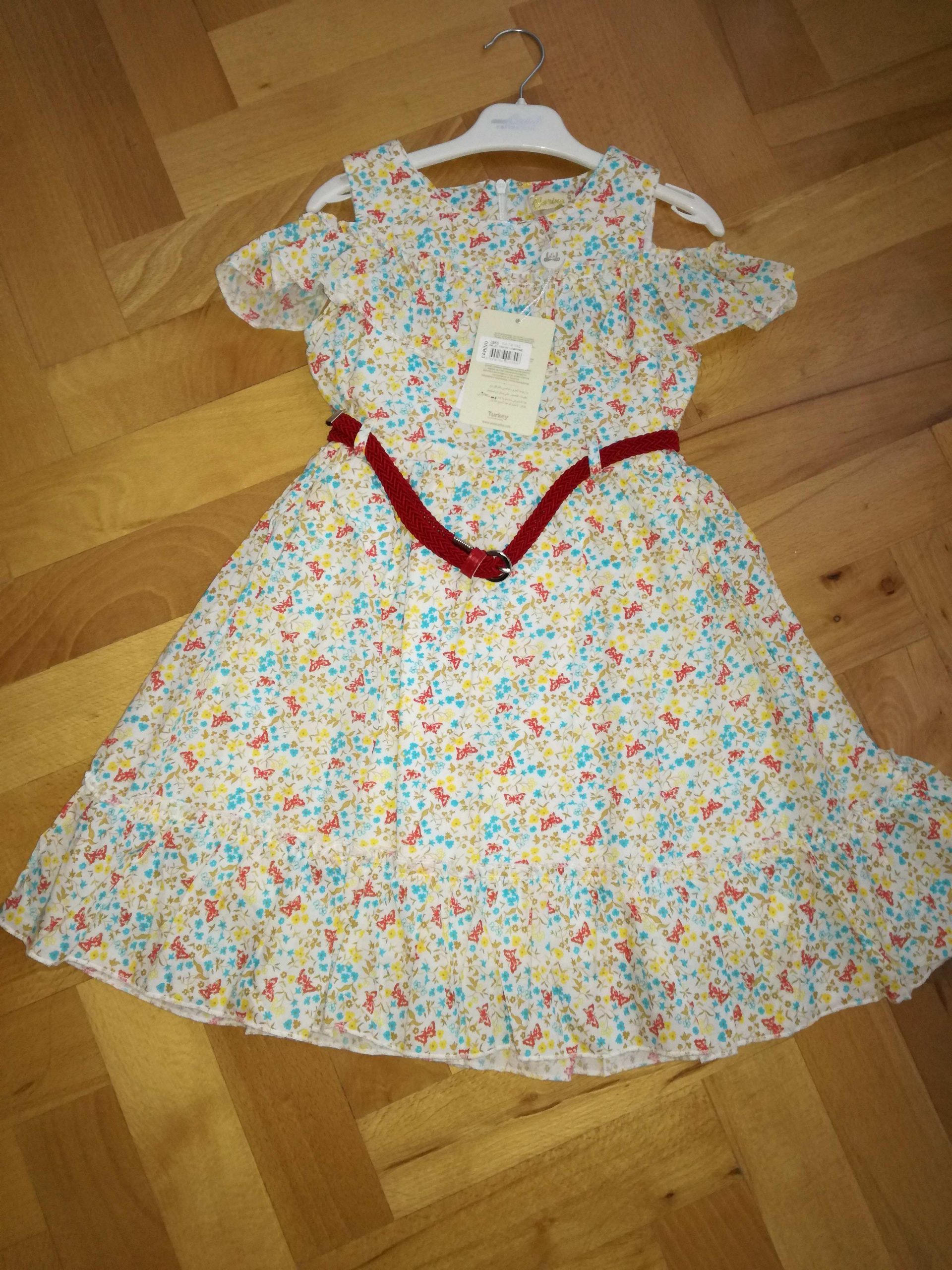 Šarena haljina sa crvenim kaišem